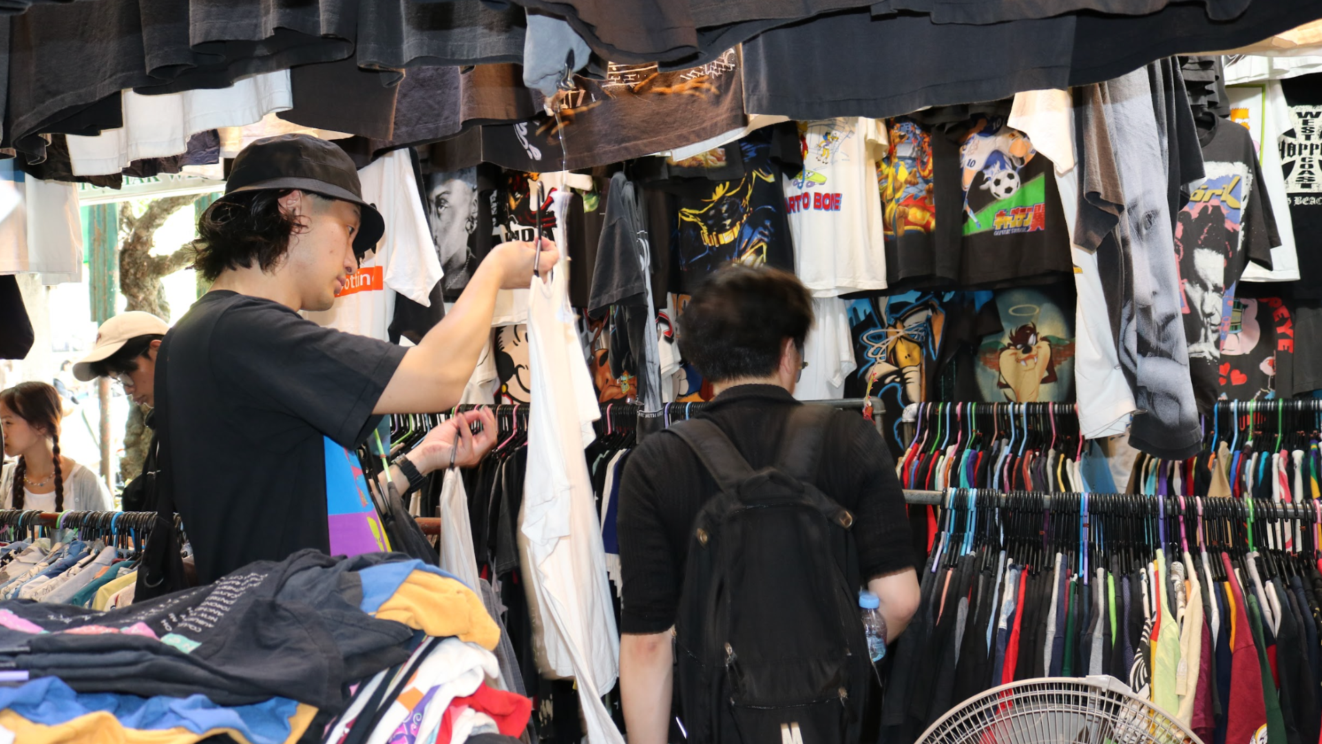 古着バイヤー達は引き続きナイトマーケットで仕入れに没頭。ビンテージのデニム、レアなバンドTシャツ、過去の時代の装いに新しい命を吹き込む一着を探し求めます。