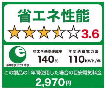 省エネ基準達成率140%を達成しており、電気代が年間約2,970円