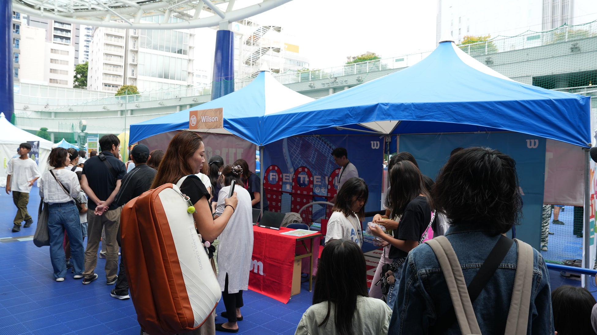 コートを囲むように設置された25社の協賛企業ブースには終日列が途切れず、本格的な的当てゲームから、専門校バンタンと連携した「テニス×ファッション」をテーマにしたメイクアップ体験まで、多彩なコンテンツが来場者を魅了しました 。