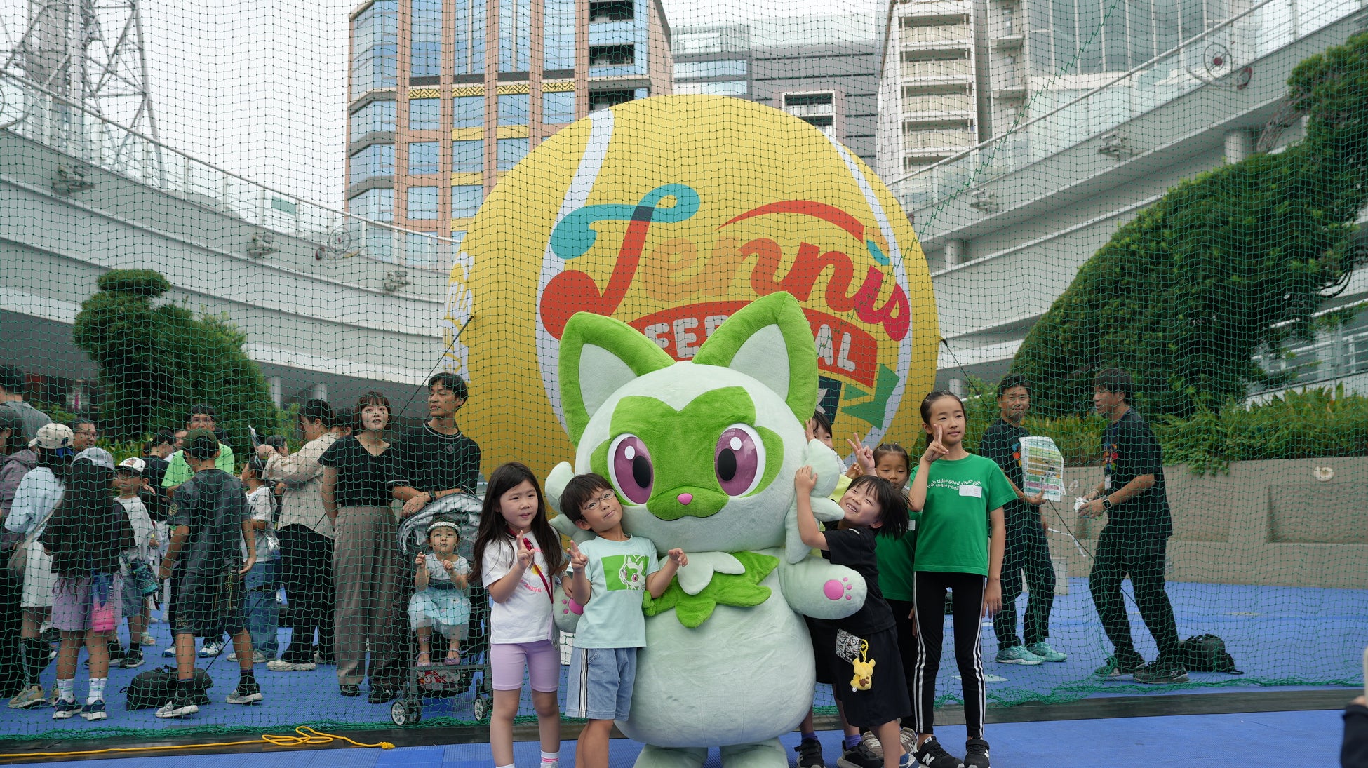 また、日本テニス協会テニスキッズアンバサダーの「ニャオハ」が登場すると、子どもたちから大きな歓声が上がり、一緒にテニスを楽しむ姿が見られました。