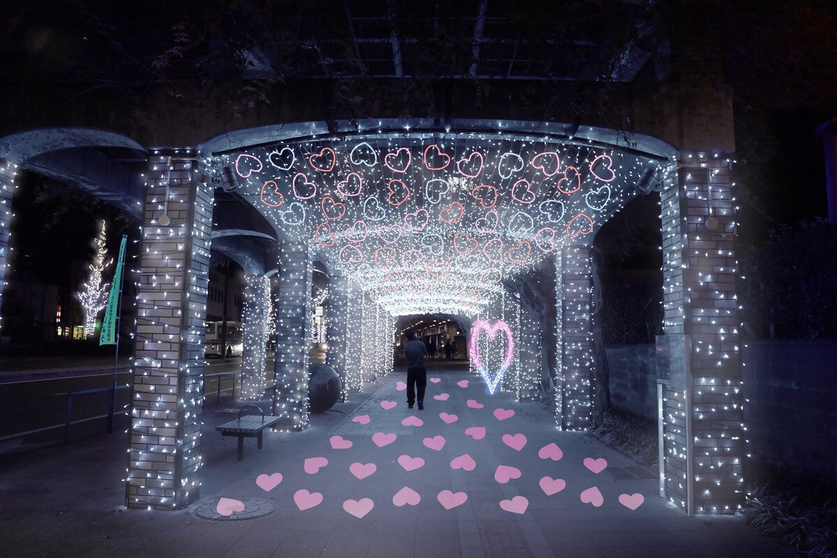 「一部分だけじゃなくて、全体のイルミネーションを見てほしいです。東側から見たときと西側から見たときの印象の違いも楽しんでもらえたら。ハートのフォトスポットは今までないスポットなので、学生さんたちにいっぱい写真を撮ってほしいです」