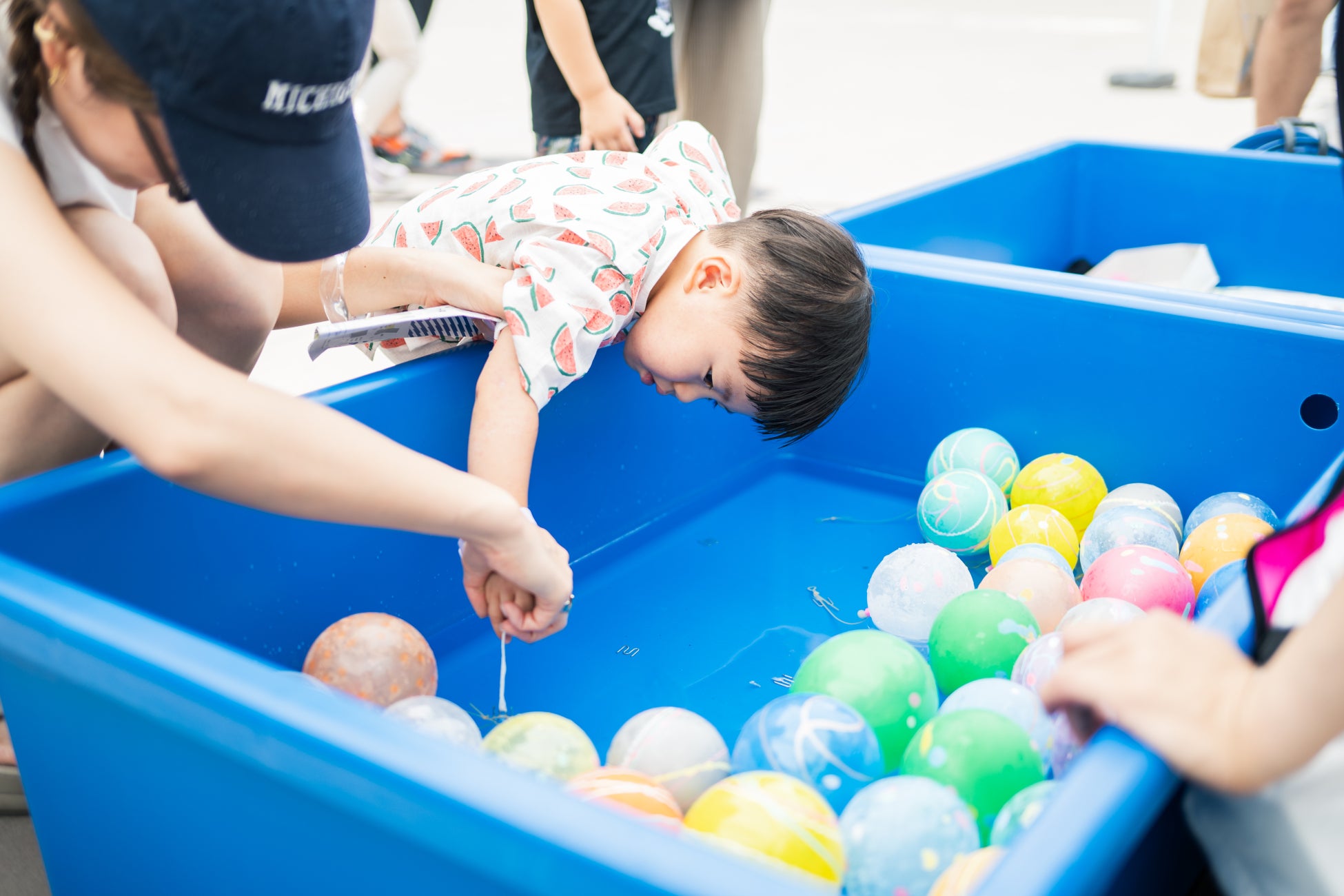 毎年大人気のこども縁日では射的、輪投げ、スーパーボールすくい、ヨーヨー釣りなどが楽しめます。