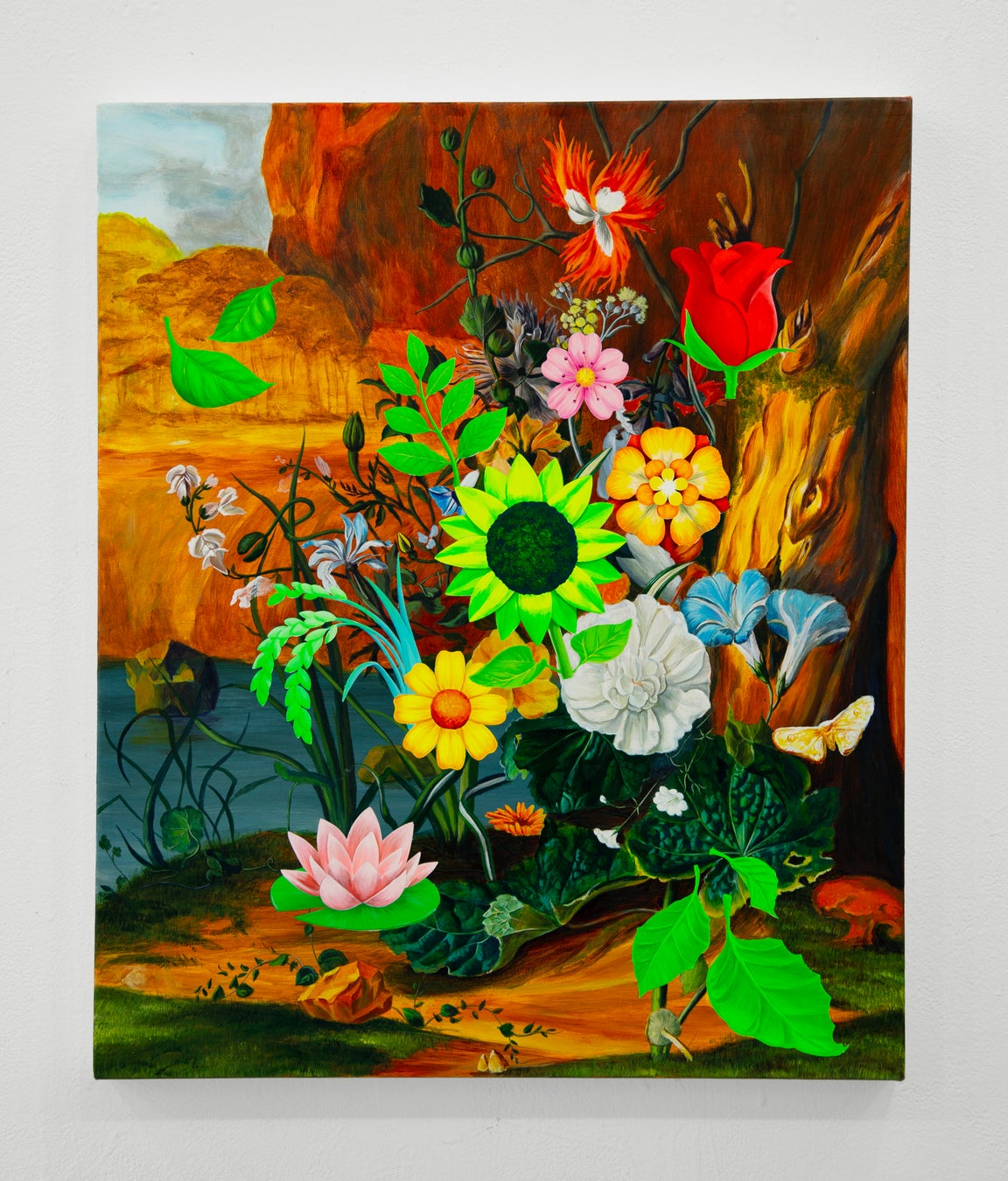 鈴木拓良(1996年生)は東京都出身、インディアナ大学ブルーミントン校絵画専攻(2019)、ワシントン大学セントルイス校視覚芸術専修(2021)を修了後、ニューヨークを拠点に活動しています。常にスマートフォンを通じてネット空間が身近にある現代社会において、デジタル技術の見せる空間と人体の五感が認知するリアルな空間は相反するものではなく、分かちがたく隣接する存在といえます。こうした現代のデジタル技術と人間の関係性にフォーカスし、この関係が今日の社会をどのように形成しているかを比喩的に描いた世界観を作品中に展開します。
