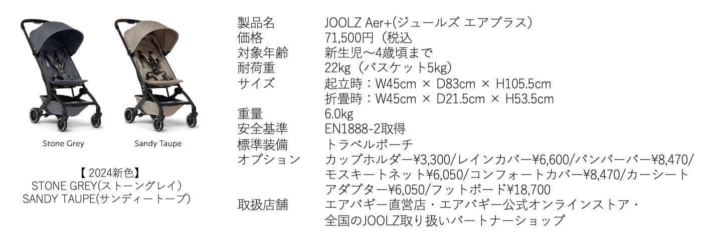 <2024春の新色登場>オランダ発スタイリッシュベビーカー <JOOLZ Aer+(ジュールズ エアプラス」に ”ストーングレイ”と”サンディートープ”が仲間入り! おしゃれなベビーカーの新たな選択肢