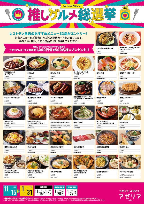 アゼリア内飲食店各店より「推し」メニューが 32 品エントリーいたします。