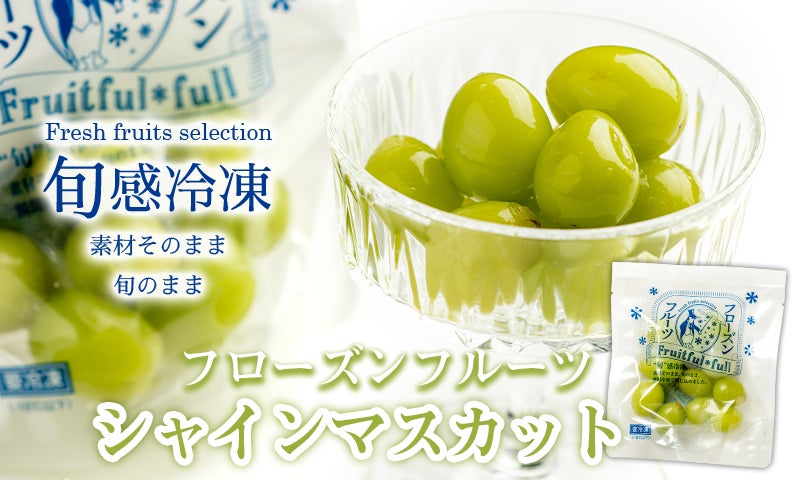 果樹王国山形県東根市産を中心に採れたてのシャインマスカットを瞬間冷凍しました。つるんと輝くシャインマスカットの実を丸ごと冷凍したその姿は、 まるで可愛らしい一口アイスそのもの。毎日の生活のひとときにひとつ口に含むだけで、気分もすっきりリフレッシュ!お風呂上がりに、晩酌のおともに、身も心もリフレッシュできるような、ジューシーなシャインマスカットです。 半解凍のままみずみずしい甘さを是非ご堪能ください。シャリっとした食感とシャインマスカットの風味とさわやかな味わい。凍ったままミキサーでスムージーや、フルーツジュレなどをしてもおいしくお召し上がりいただけます。