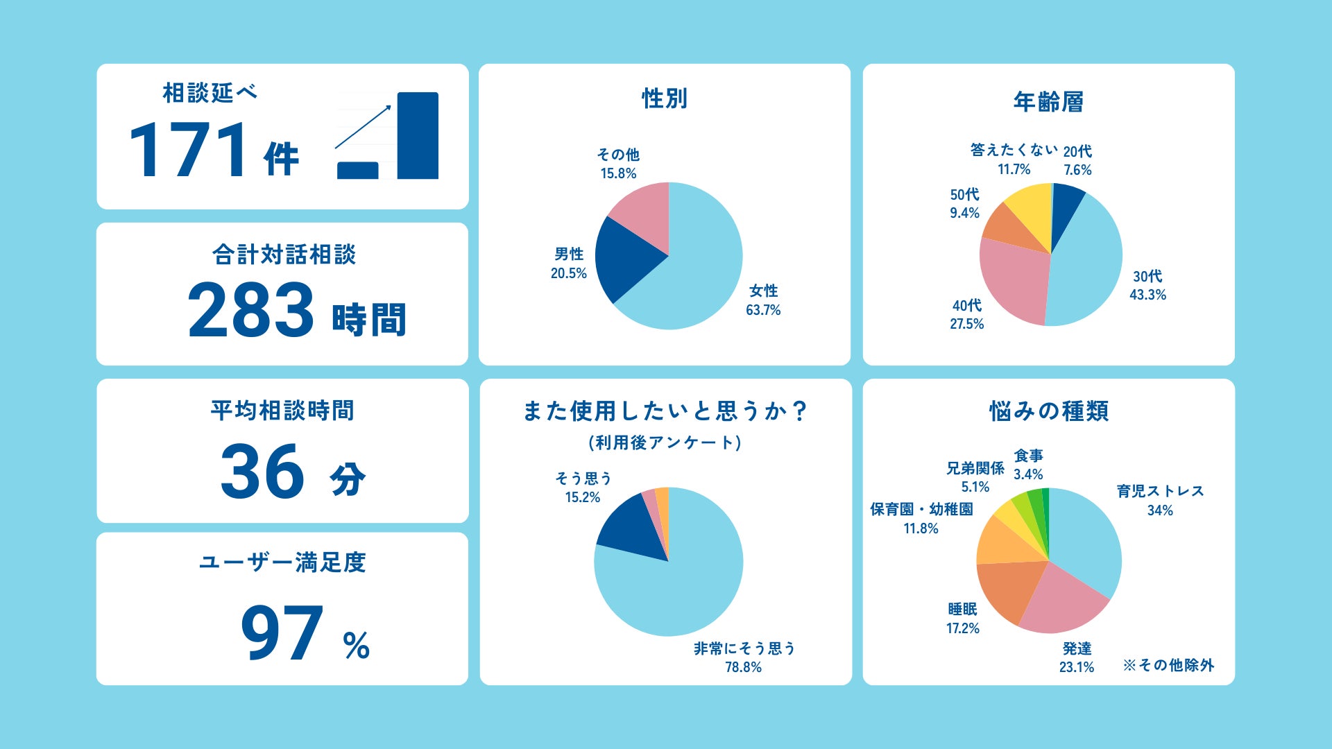 満足度が97%を記録:20代〜50代の親御様から傾聴AIチャット相談に対する高い評価