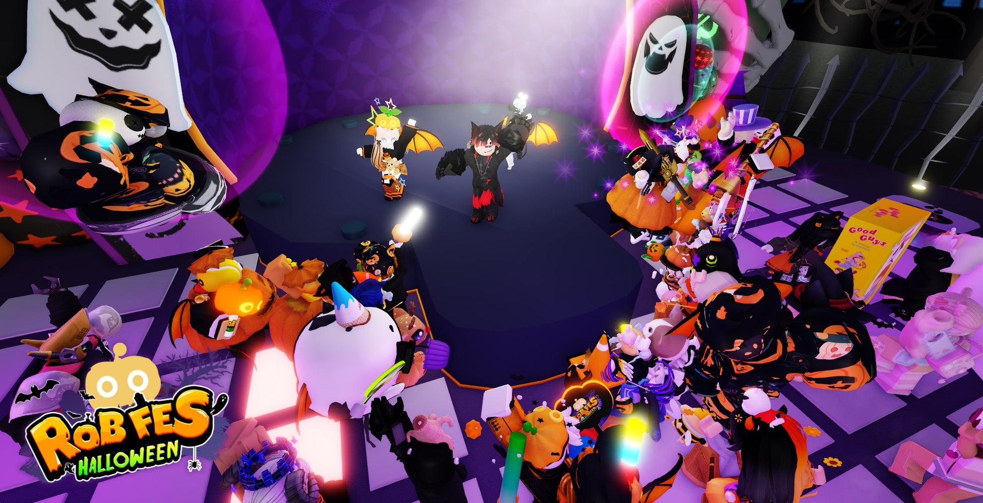「ロブフェス-ハロウィン」は、私たち株式会社ロブラボが主催・運営したRoblox上の大規模ハロウィンイベントです。Robloxで人気のYouTuberを多数招き、バーチャル空間でのダンスイベント、期間限定のゲーム、アバターのハロウィン仮装など、多彩なコンテンツを提供いたしました。