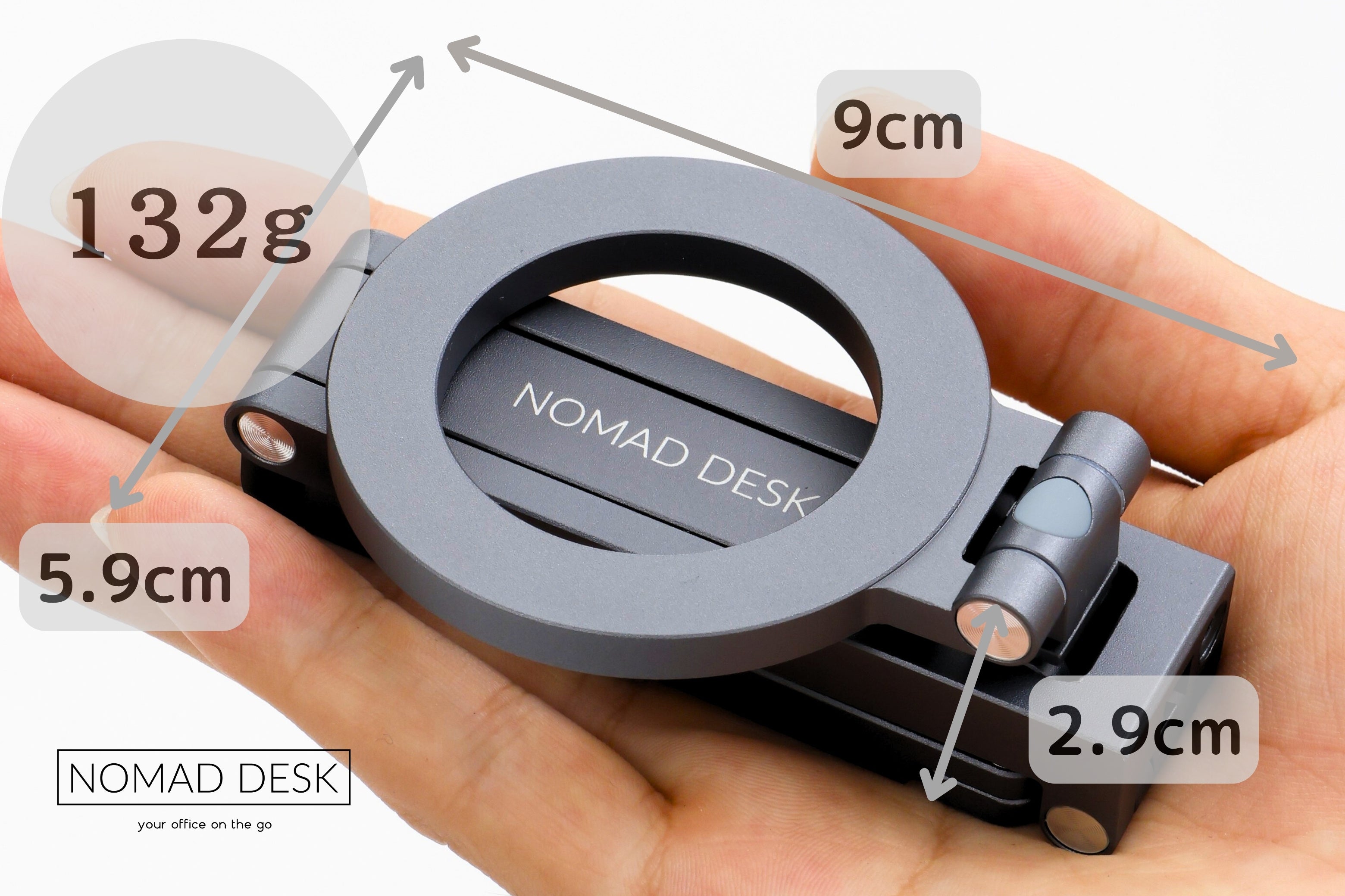 堅牢で高級感あふれるアルミ合金製でありながら、重さはわずか132g。折り畳み時の最長部は約9cmと手のひらサイズで、ポケットや小さなカバンにもストレスなく収納できる優れたモバイルツールです。