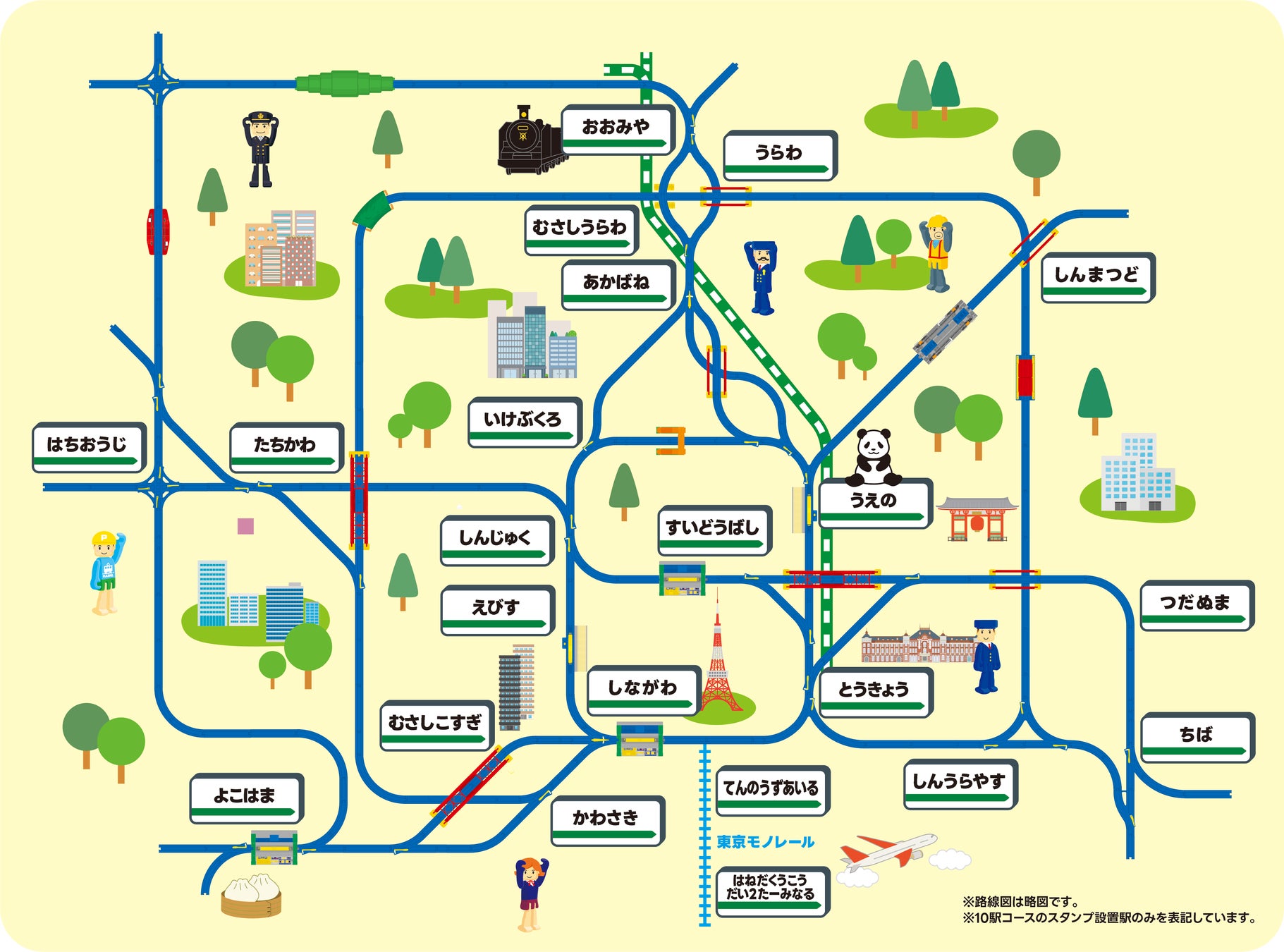 首都圏に設置された22駅の中からお好きな10駅を巡り、10個のスタンプを押印してください。