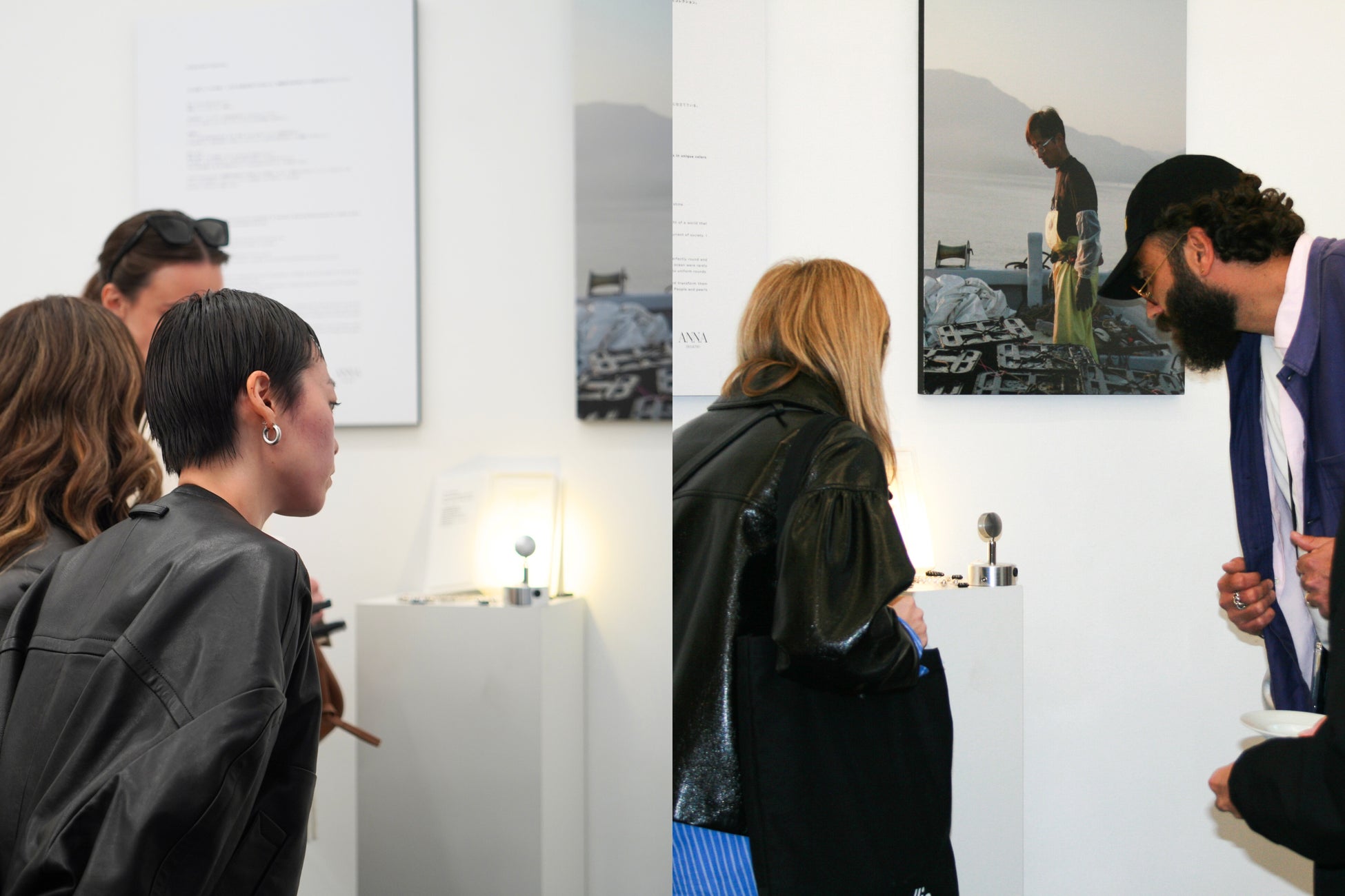 この空間では、ジュエリーだけでなく、アートピースや空間全体を通じて、私たちが一貫して取り組んできた “素材の昇華” をご体感いただけます。真珠を取り出した後の貝殻から生まれた漆喰壁、都市鉱山由来のアート作品、そして唯一無二のジュエリーたち。ここにあるすべてが、「昇華」を経て、新しい価値を纏っています。