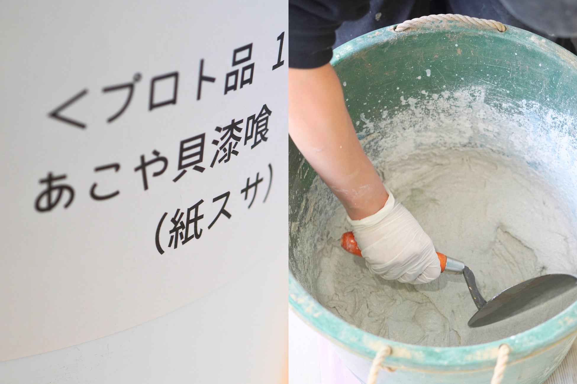 今回の漆喰壁製作においてはブランドチーム自らが貝殻の清掃を行い、真珠の産地周辺の自治体や国内の焼成工場に働きかけ、ご協力いただきながら粘り強く解決策を探求しました。その結果、真珠の貝殻を漆喰塗料へと生まれ変わらせることに成功しました。