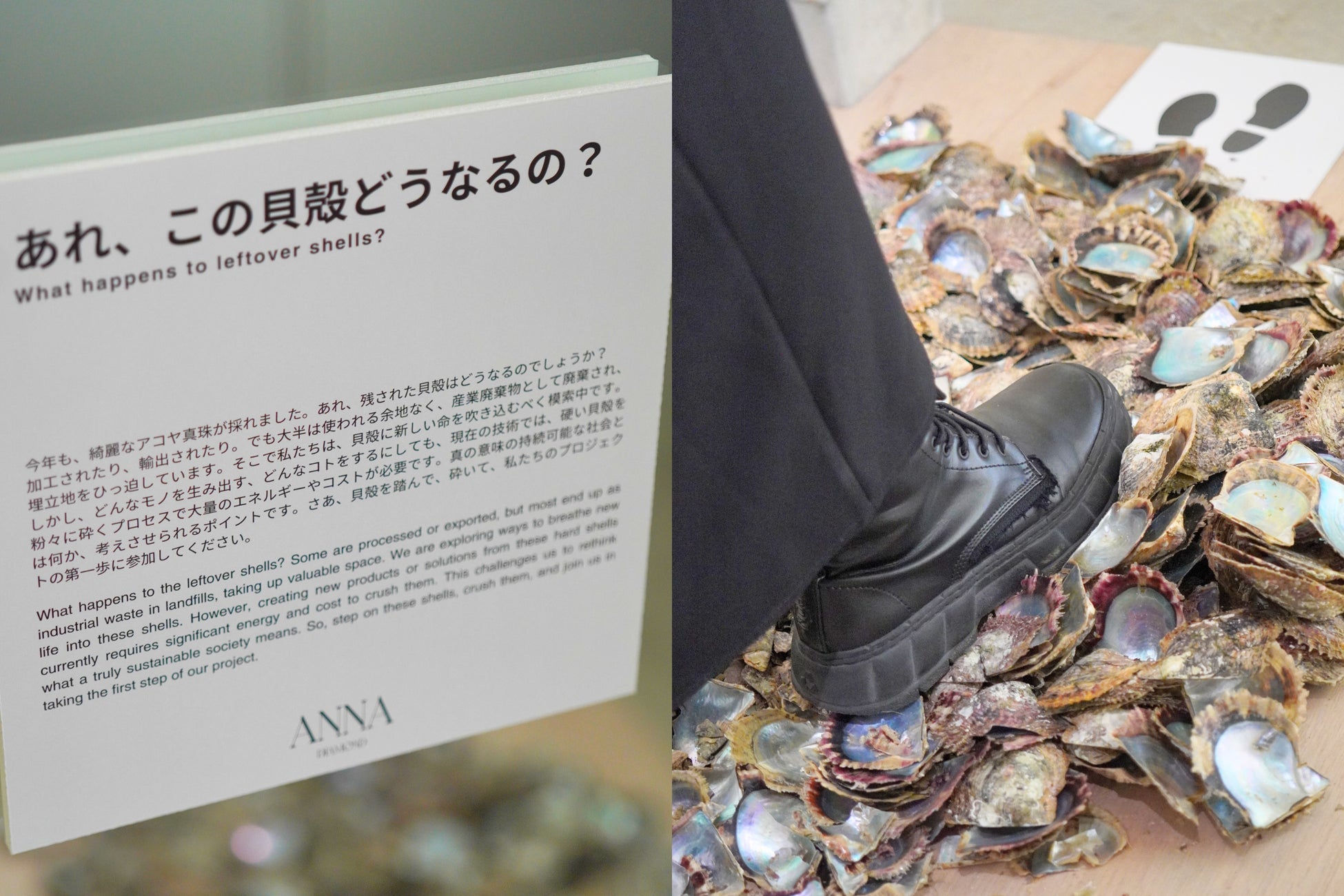真珠を取り出した後の貝殻は、ほぼ全て産業廃棄物として処分され、埋立地をひっ迫し社会問題となっています。