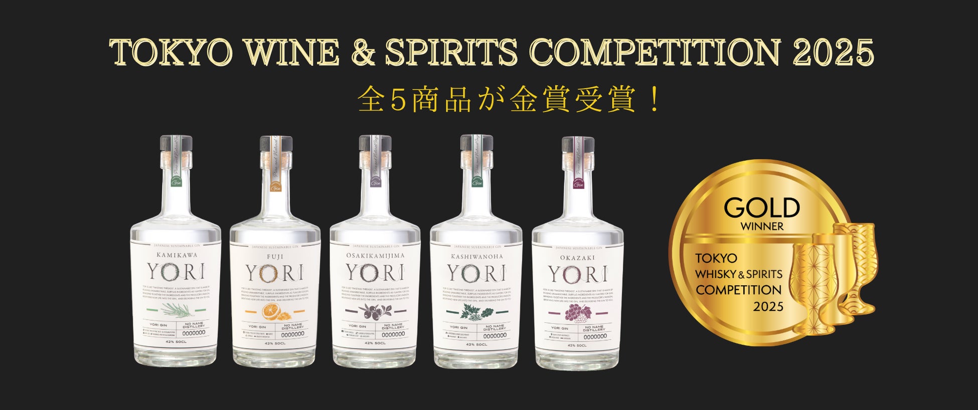 株式会社Connec.t(本社:東京都渋谷区、代表取締役:小口潤、以下「当社」)、並びに日本中の地域素材を活用した社会課題解決型サステナブルジン”YORI”を開発するプロジェクトチーム「NO NAME DISTILLERY(ノーネームディスティラリー)」は、2025年に開催された国内最大級の酒類品評会「東京ウイスキー&スピリッツコンペティション(以下TWSC)」において展開中の全5商品が金賞を受賞したことをお知らせいたします。