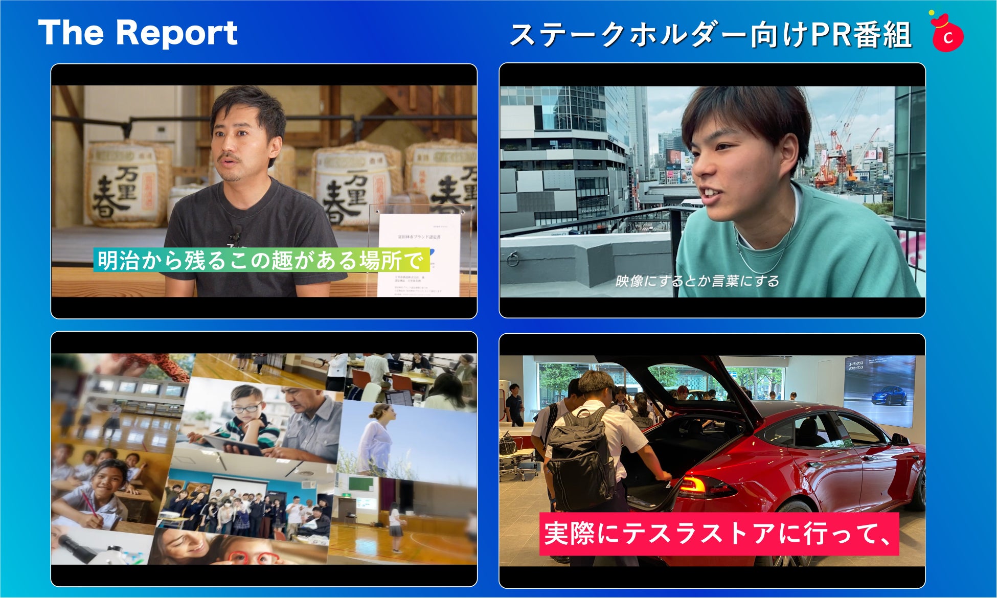企業のビジョンや社会での役割をテーマにした番組を制作し、配信。企業の理念や事業内容、サービスを次世代のニーズに合わせてエンタメ要素を取り入れて発信し、ブランドとしての認知を広げます。