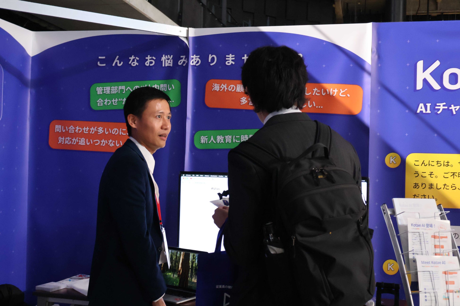 初の出展として、当社が開発・提供している、AIチャットボット「Kotae」を出展させていただきました。今回、ステハジEXPO2025の公式AIチャットボットとして採用いただき、来場者・出展者の皆様のお問い合わせ対応をサポートいたしました。