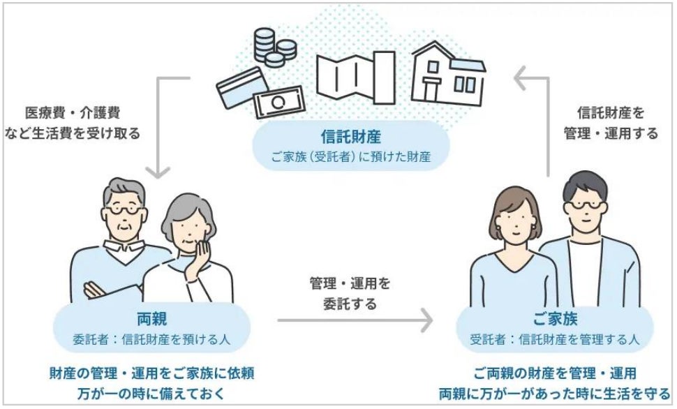 ご家族間で信託契約を締結し、親の資産の管理権を子世代に移転させ、相続後の遺産分割までを担うことができます。