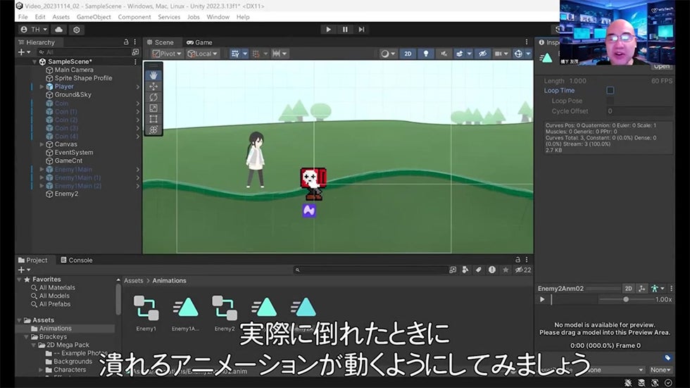 「2Dゲーム開発講座」では、ゲーム開発に興味がある方に向けて教材を提供しています。ゲーム開発を独学で学ぶのは難しいと感じている方も多いですが、諦める必要はありません。この講座ではUnityを使用した2Dアクションゲームの開発に必要な基礎知識を学ぶことができます。