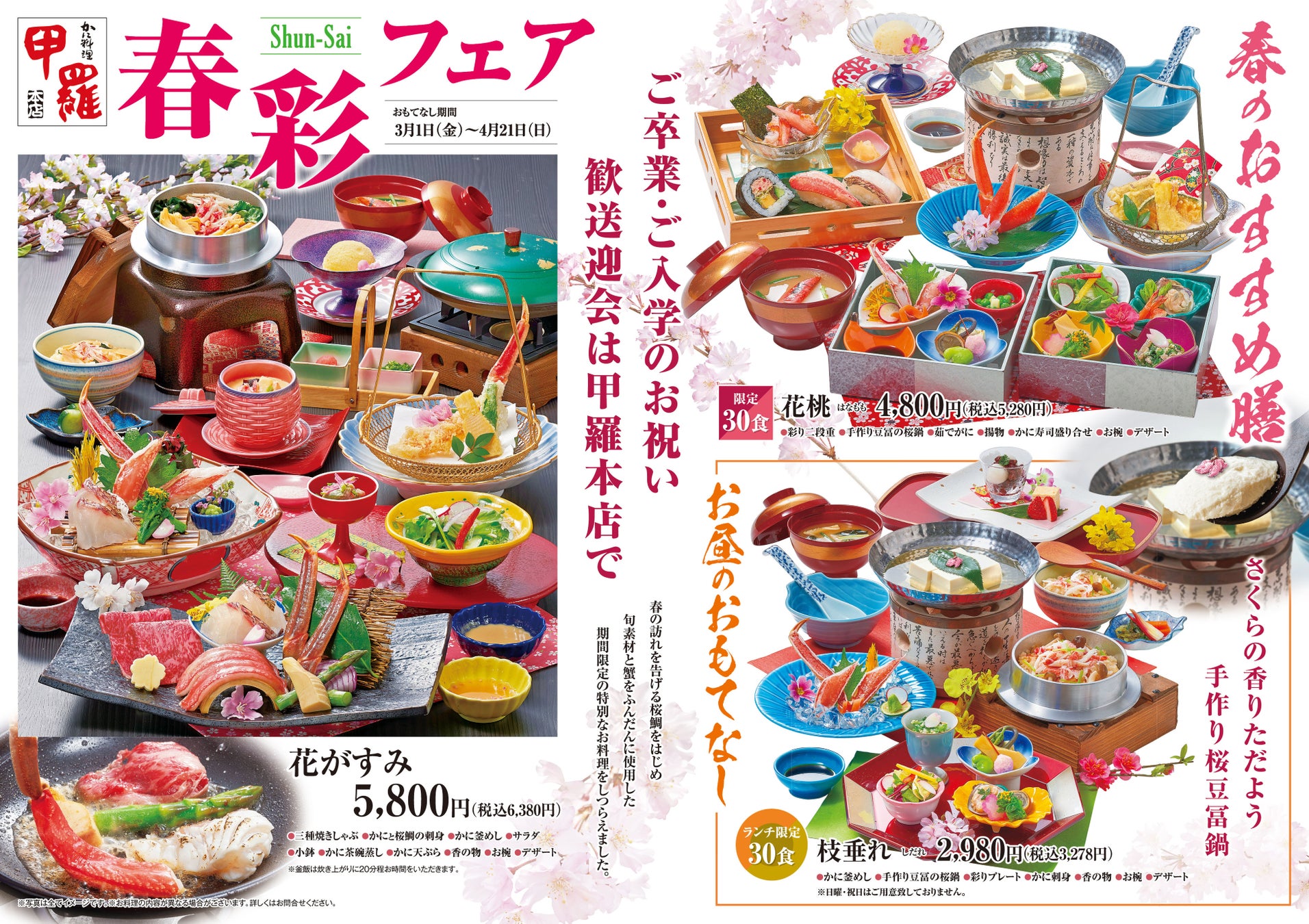 創業50年の老舗かに料理専門店【甲羅本店】が卒業・入学や歓送迎会など節目のお祝いを彩る「春彩フェア」を3月1日より開催!