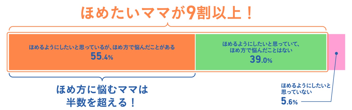 子供の勉強について「ほめるようにしたいと思っている」ママは実に9割を超えており、ほめることで子どもたちのモチベーションや自己肯定感を高めて、前向きに学習に取り組んでもらいたいと考えている様子。とはいえ、ほめてあげたいと思っていても、ママの半数以上は「ほめ方」で悩んだことがあるようです。
