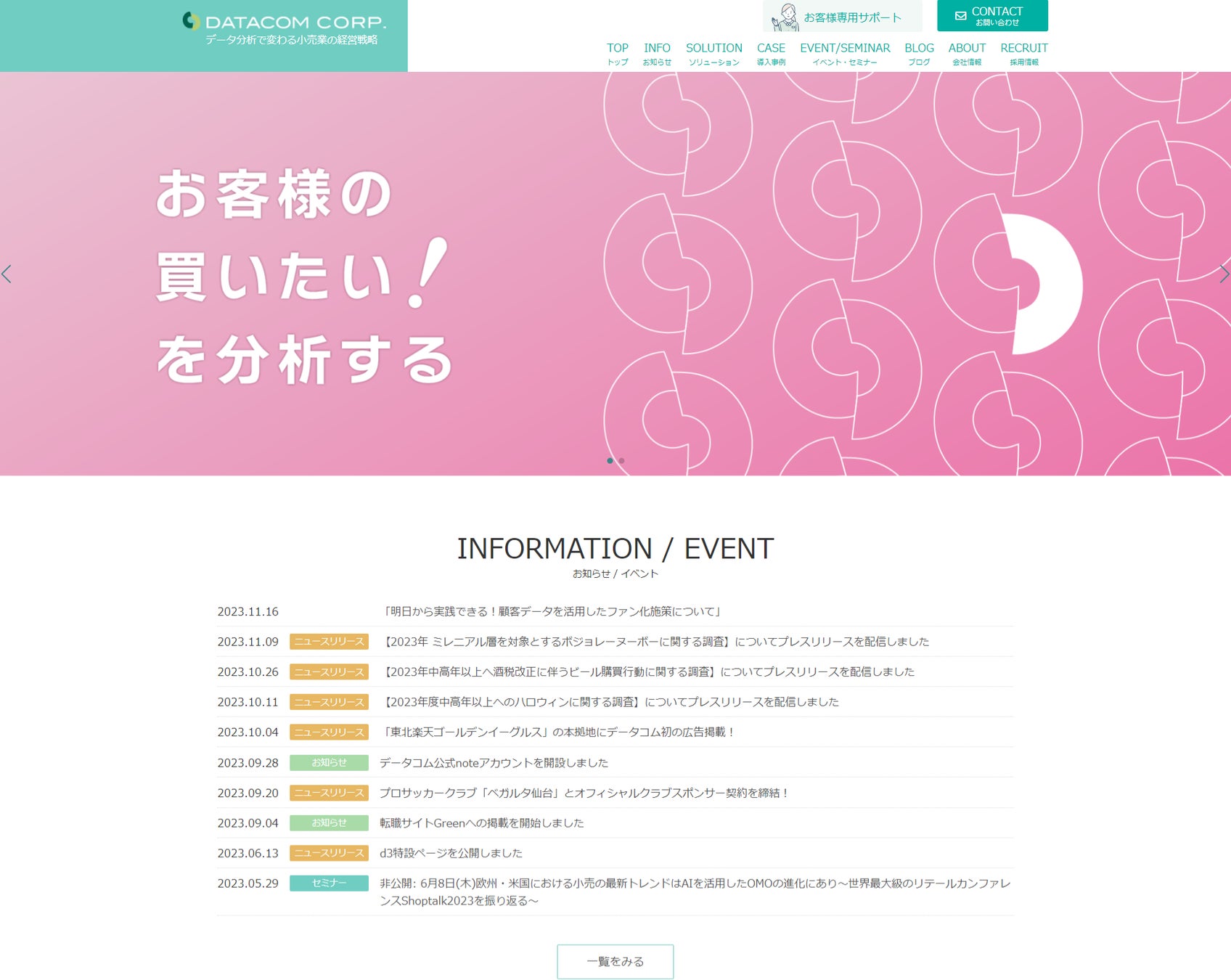 当社は1994年の創立時から一貫して小売業界に特化したシステムソリューションを手掛けてきました。2024年4月で創立30周年を迎えるにあたり、これまで培ってきた知見の還元と心機一転の想いを両方込めてコーポレートサイトのリニューアルを行いました。商品や顧客の分析システムをはじめとしたサービスの提供はもちろん、有益な情報の発信も強化することで、これまで以上に小売業界の事業発展に貢献して参ります。