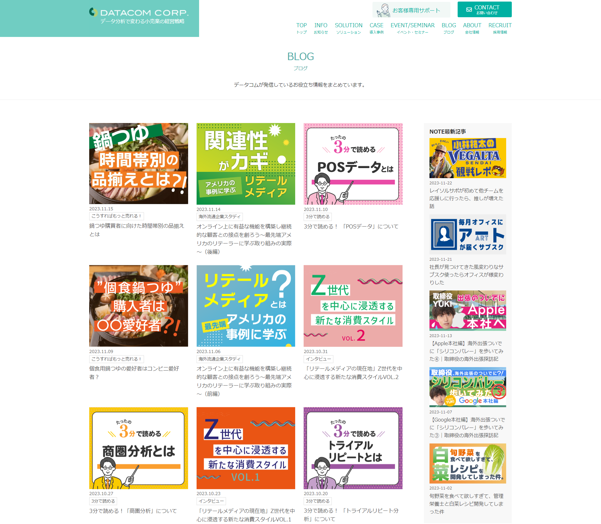 小売業界のトピックス、イベントやセミナーの開催について日々、様々なチャネルで積極的に発信していました。リニューアルにより当社のニュースやブログ、noteなども表示させるよう変更したため、コーポレートサイト上でアクセス出来るようになりました。また訪問いただいた方にご入力いただく、お問い合わせフォームも、より使いやすくなるよう改善いたしました。