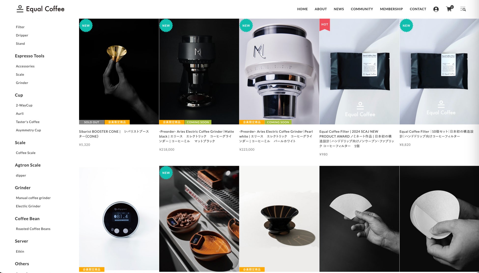 おうちで本格的なドリップを行うためのツールはEqual Coffeeですべて揃う。人気のツールは発売とほぼ同時期に売り切れてしまうほどの人気ぶりだ。