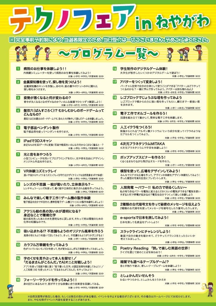 ◆「わくわく科学体験! テクノフェアinねやがわ」開催概要