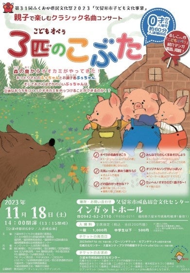 第31回ふくおか県民文化祭2023「久留米市子ども文化事業」こどもオペラ『3匹のこぶた』開催概要