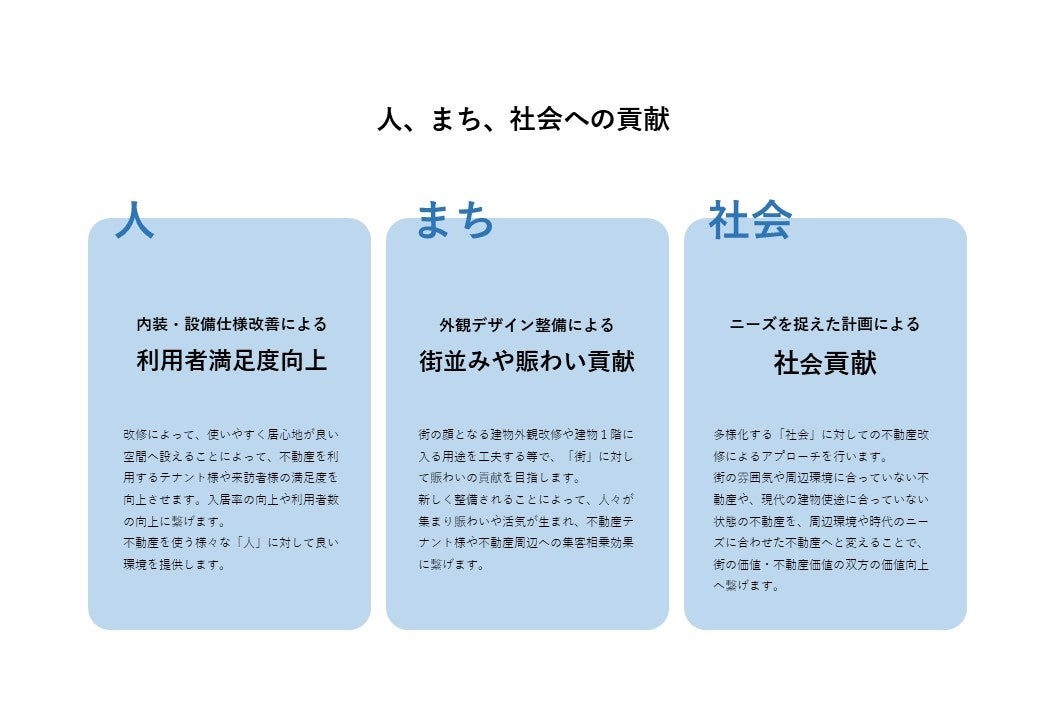 多様化する「社会」に不動産改修によるアプローチを行います。