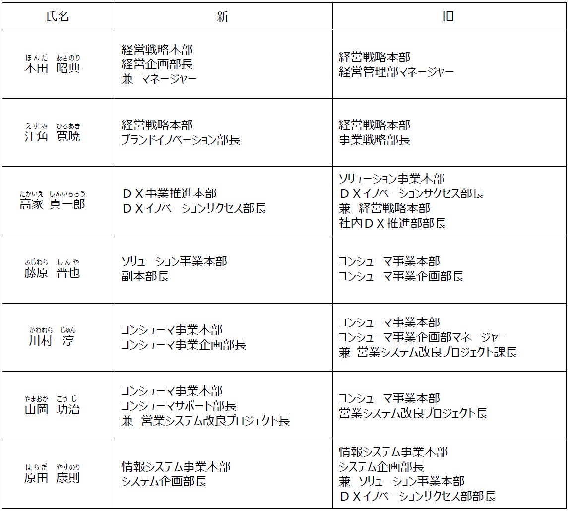㈱エネコム 組織見直しに伴う役員担務の変更および人事異動について