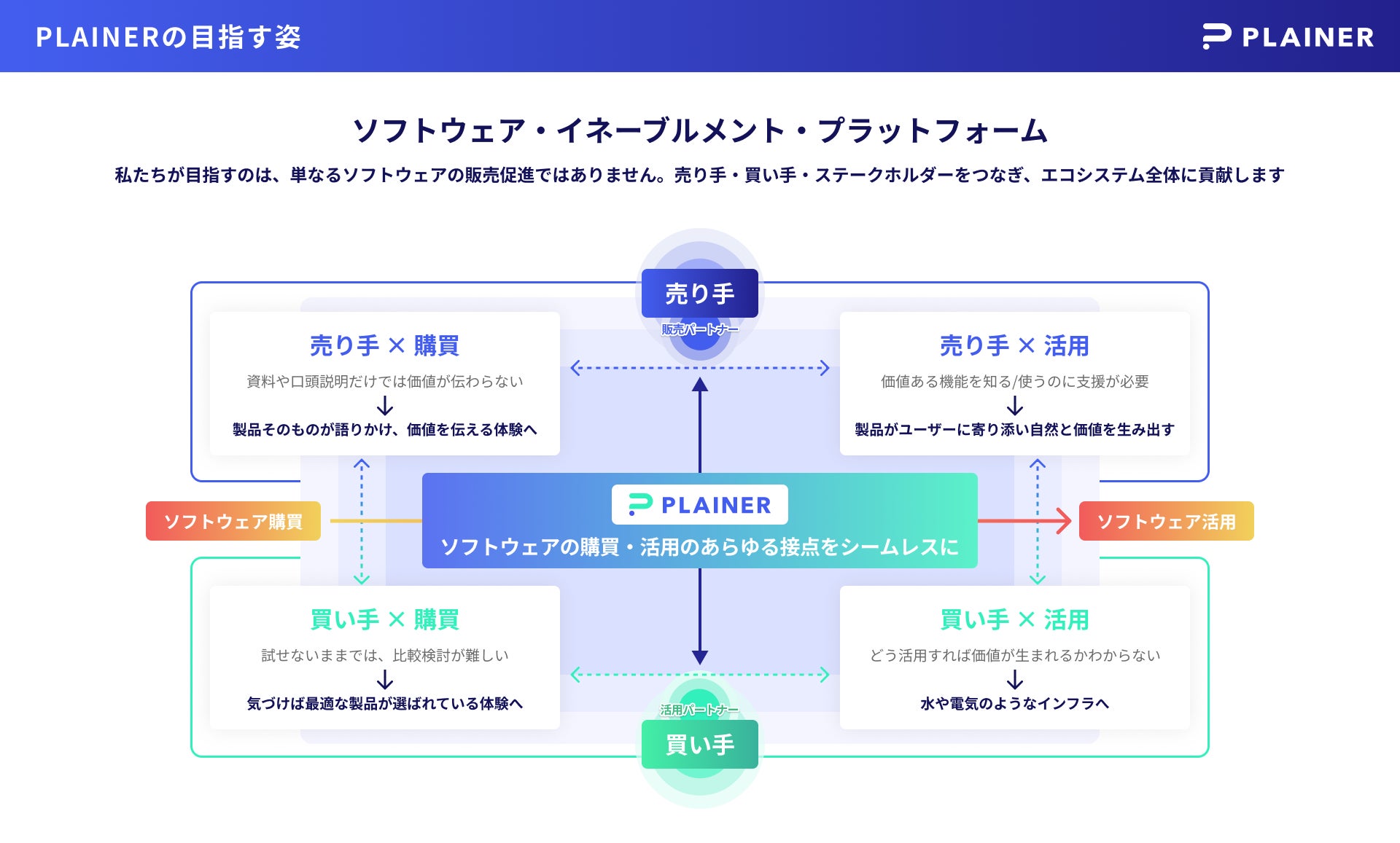 PLAINERは、すべての人がテクノロジーの恩恵を受け「気づけば未来が始まっている」ような新しいソフトウェアの購買・活用体験の創造を目指しています。