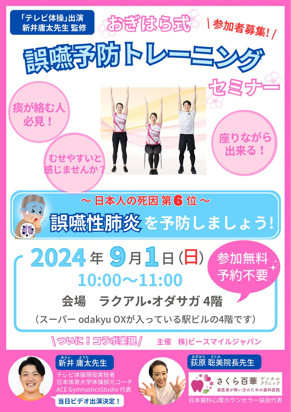 【入場無料】みんなの体操「新井庸太先生」コラボ企画!おぎはら式 誤嚥予防トレーニングセミナーを9/1に開催!