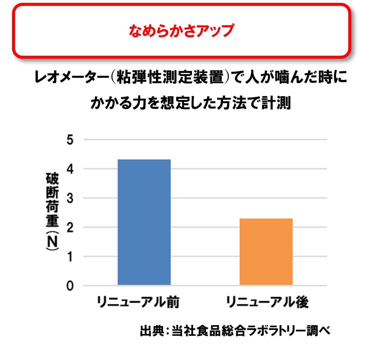 チーズのなめらかさアップ。リニューアル前に比べてやわらかくなっています。
