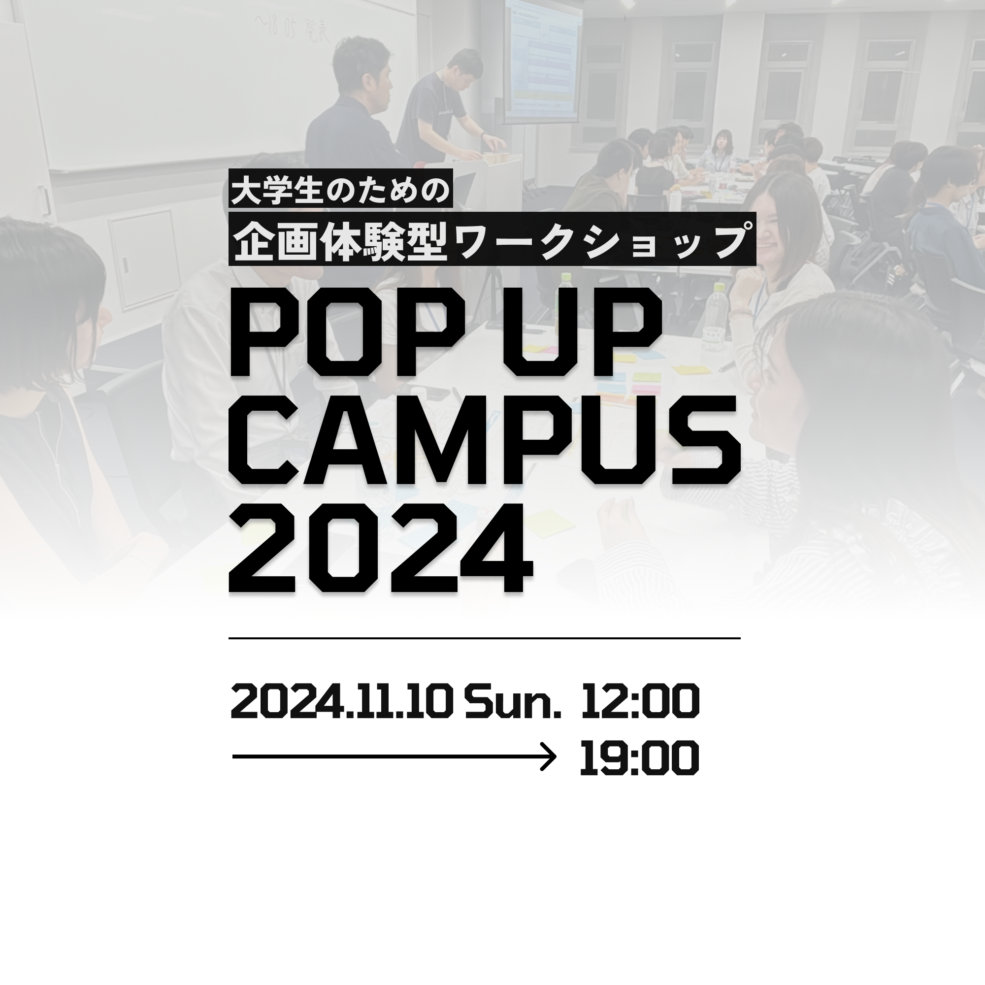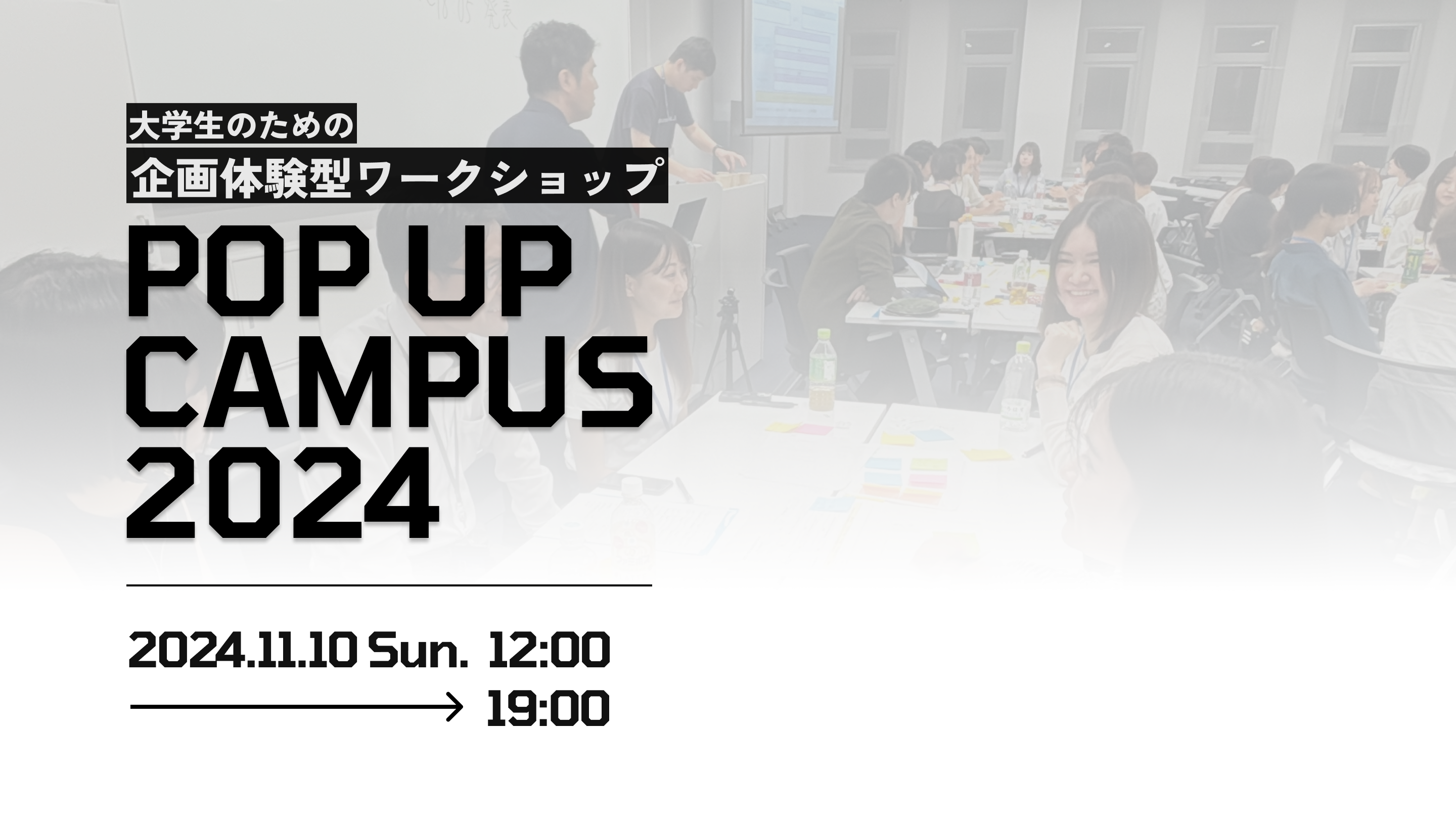 POP UP CAMPUS 2024(以下、PUC 2024) は、将来のキャリアを考える学生を対象に、企業が講師を務める企画立案型ワークショップイベントです。