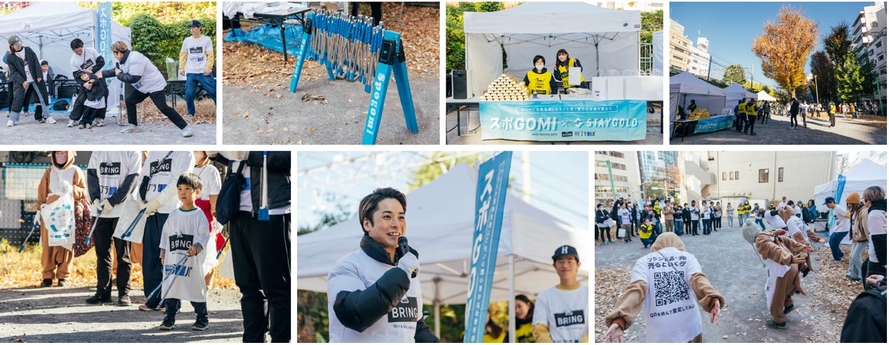 昨年末、12月2日(土)に開催した当社初のCSRイベント「STAYGOLD×スポGOMIクリーンプロジェクト」では、スポGOMI※2との合同開催にて、自社応募により集まった約60名の一般応募の方々と、渋谷区公園の周辺地域3km圏内の競技形式のクリーンイベントを開催いたしました。閉会式では、スペシャルアンバサダーFISHBOYによる「PERFECT HUMANダンスレクチャー」にて、参加者全員で身体を動かして温めることができ、会場を盛り上げていただきました。