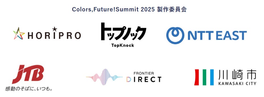 株式会社ホリプロ、株式会社TopKnock、NTT東日本株式会社 神奈川事業部、株式会社JTB、株式会社フロンティアダイレクトと川崎市シティプロモーション推進室で構成する製作委員会が「Colors,Future!Summit2025」を企画・実施しています。