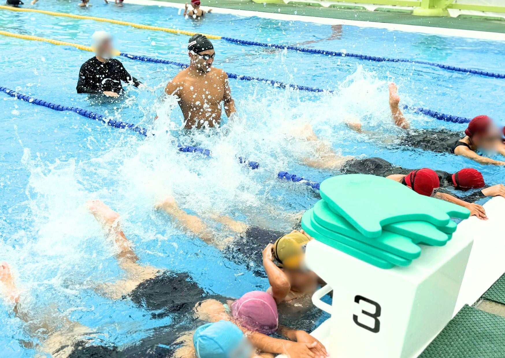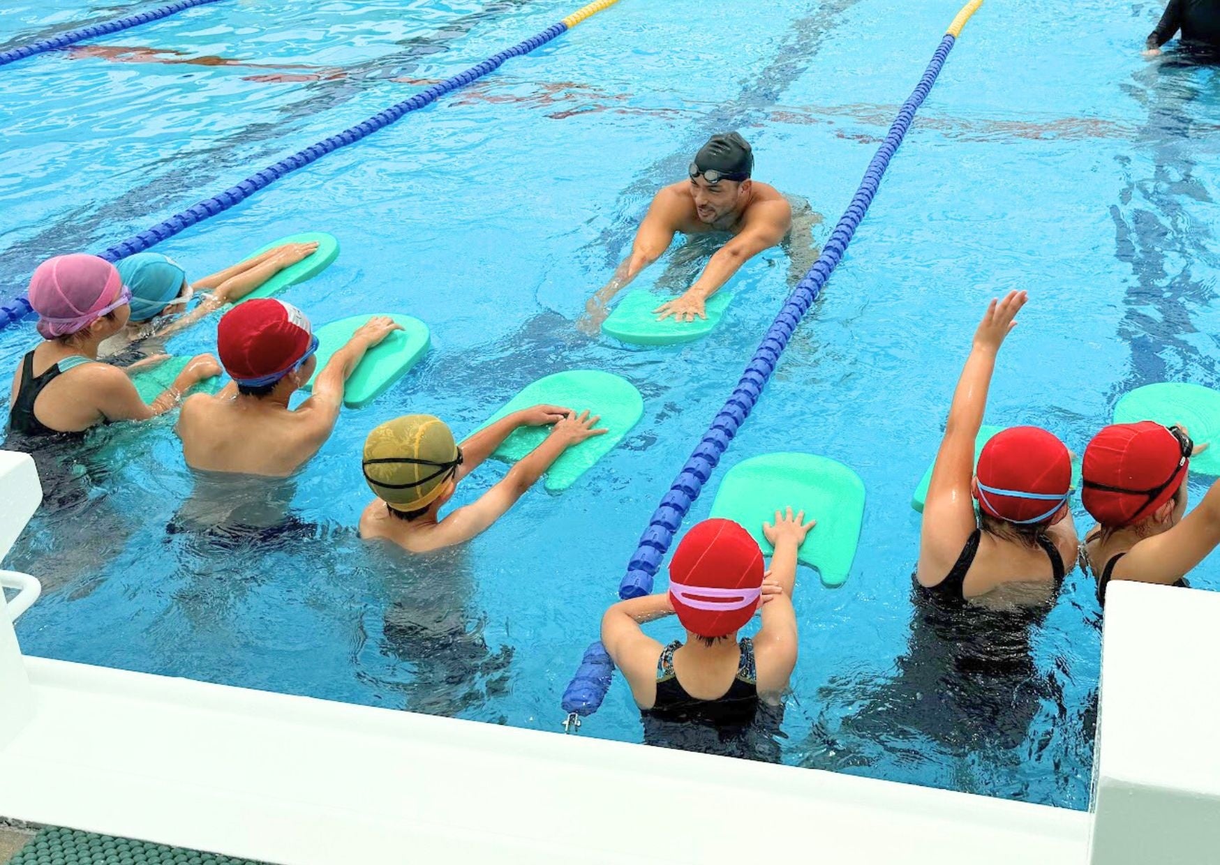 この二日間のプログラムでは、各日を二部制に分け、午前中に2・3・4年生、午後に1・5・6年生を対象に水泳指導を実施しました。各セッションで子どもたちは泳力に応じて4つのグループに分けられ、それぞれのレベルに合った指導を受けました。