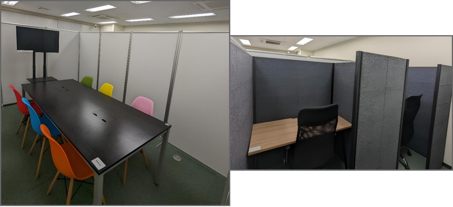 また、ミーティングスペースにおいては現在ほとんどがオンラインでのミーティングになるため、ミーティングスペース不足に陥ることのないよう整備しました。