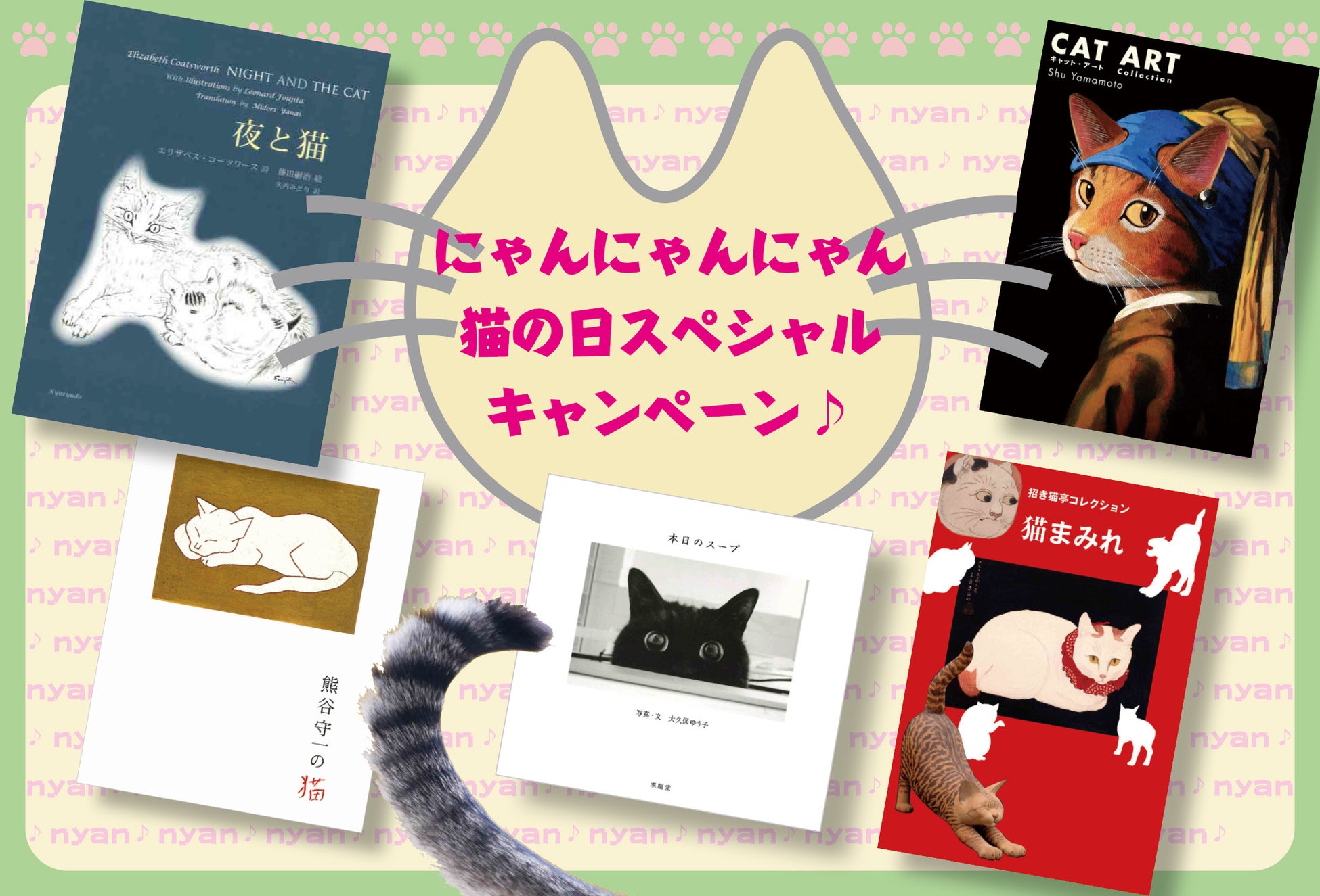 2月22日(にゃんにゃんにゃん)から2月29日(にくきゅう)の8日間、求龍堂オンラインストアにて、求龍堂刊行の猫に関係する新古書(一度書店に並び若干のキズや汚れ等がある商品)や、ポスターが特別価格に。