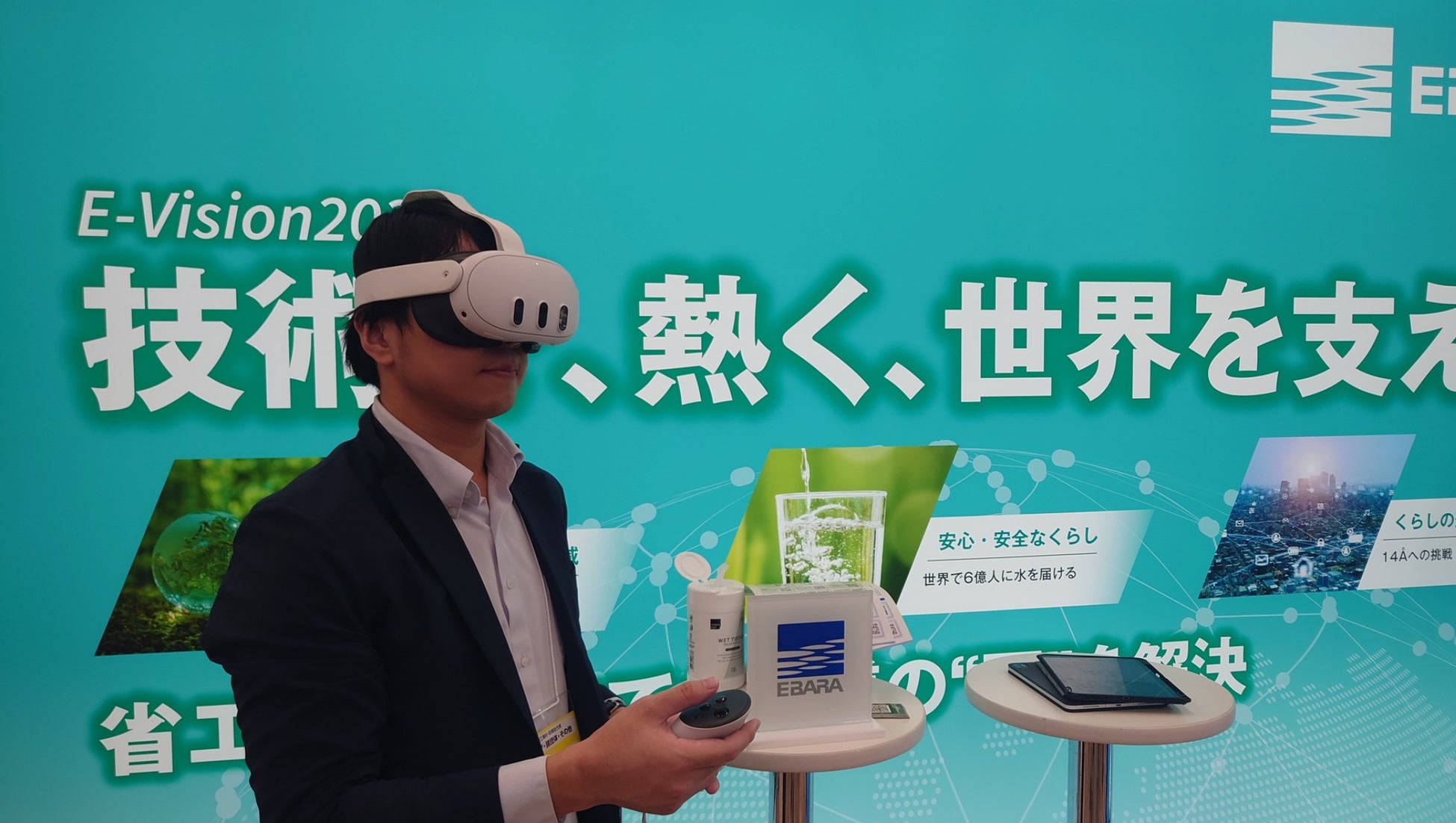 RITTAI MR及びRITTAI MANUALは、2024年10月23日から10月25日まで東京都立産業貿易センターで開催されている「第56回管工機材・設備総合展」にて、株式会社荏原製作所の出展ブースで、主に顧客向けの製品紹介に利用されています。