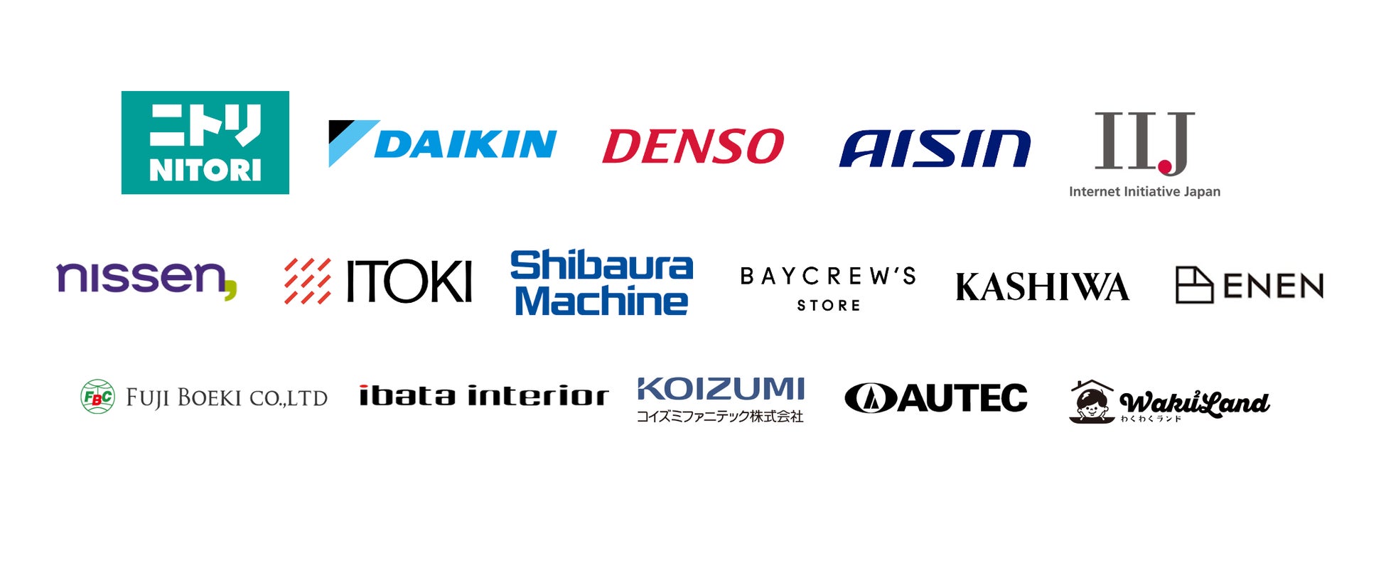 株式会社ニトリ、株式会社NTTドコモ、株式会社アイシン、株式会社デンソー、株式会社ニッセン、株式会社イトーキ、株式会社NTTコノキュー、株式会社ベイクルーズ etc… |