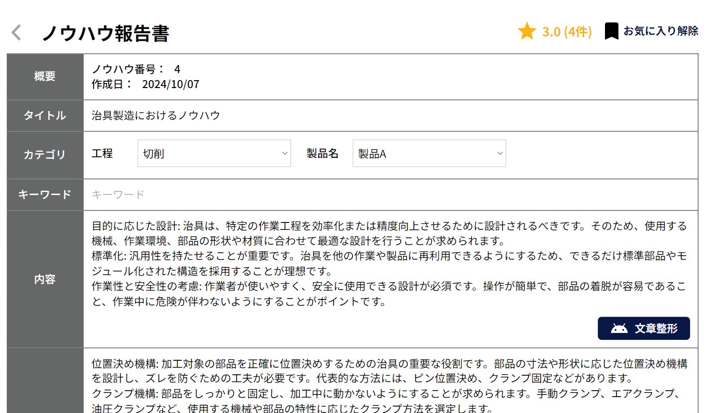 社内に蓄積されている技術ノウハウを管理することで、従業員が重要な情報を効率的に確認し、お気に入りとして登録することが可能です。これにより、有用なノウハウを社内全体へ浸透させやすくなり、技術者の人材教育の効率化や、企業の技術力向上を通じた売上改善が期待できます。