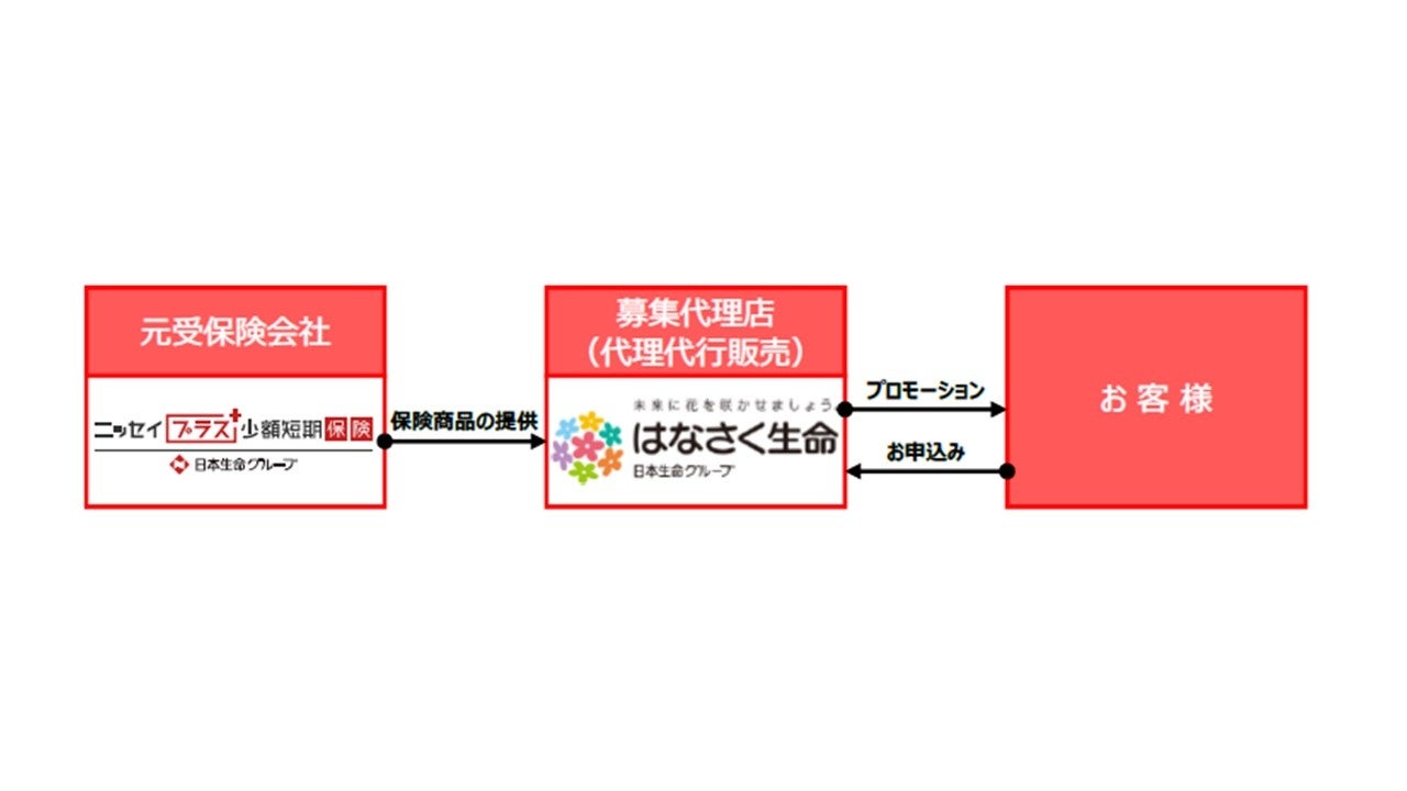 はなさく生命とニッセイプラスは、日本生命グループの会社です。このたび、両社は代理店委託契約を締結し、はなさく生命の公式ホームページを通じてニッセイプラスの商品を販売します。この取組は、両社間での初の協業取組となります。