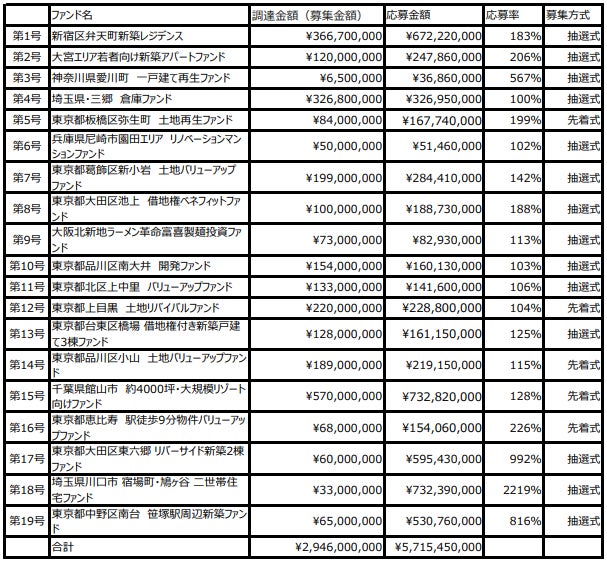 〜 ファンド公開数19件、応募率はすべて100%以上を記録 〜