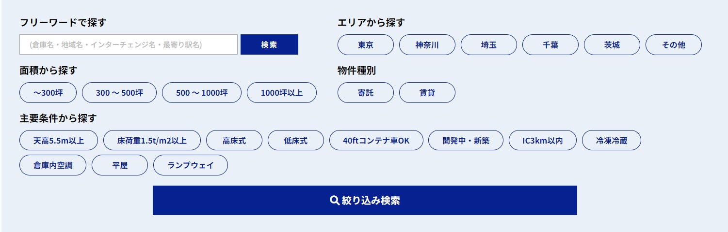 大型物流倉庫から平屋倉庫など、様々な貸し倉庫、工場、寄託倉庫を検索できる倉庫検索サイト「LOGIPICK(ロジピック)」ですが、皆様に倉庫検索をスムーズに行っていただけるよう検索機能等のリニューアルを行いました。