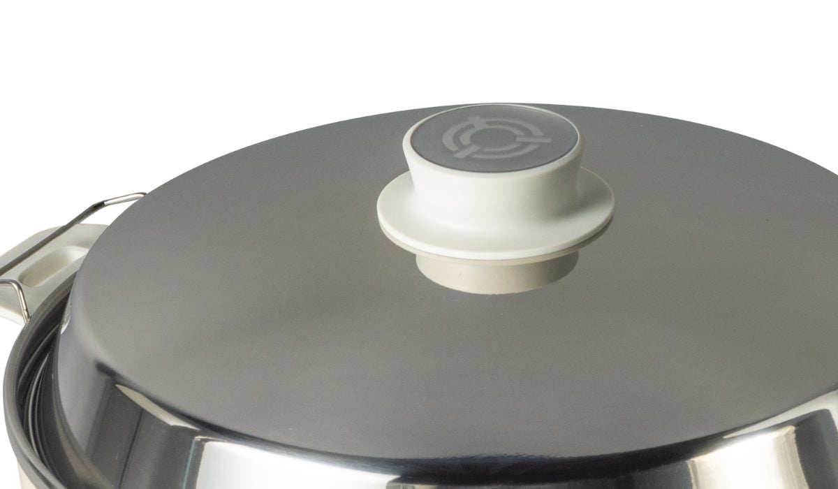 外鍋ぶたの取っ手にかえしがつけました。熱いフタを開ける際に指が熱い部分に触れにくく、より安全にお使いいただけます。