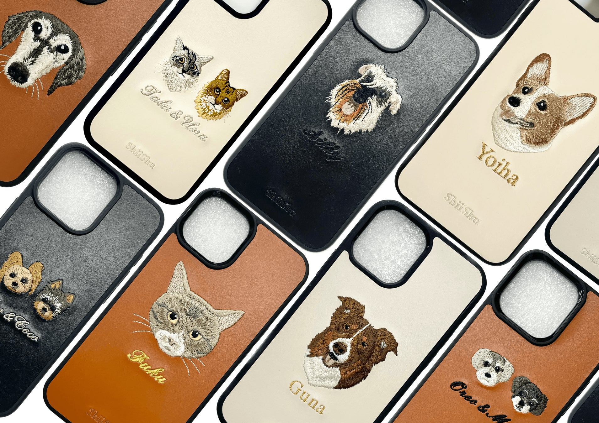 お手元の写真を送るだけ。大切なうちの子が「刺繍スマホケース」や「刺繍ワッペン」に。