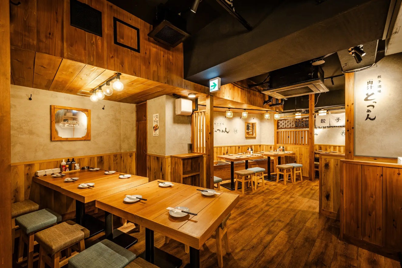2023年9月に関東進出1号店オープンから1年で4店舗展開。各エリアのグルメサイトで予約件数TOPを獲得。「 安くて、早くて、旨くて、カッコいい」がコンセプトの"肉汁餃子"や"呑める餃子・つくね"が名物の大衆餃子酒場です。なかでも何杯のんでもハイボール99円、生ビール299円、ハッピーアワー飲み放題は555円と破格の格安ドリンクが指示される理由の一つ。空中階でも平均坪月商30万の人気店に!エリアの特性に合わせて個室を完備するお店や路面店も出店。
