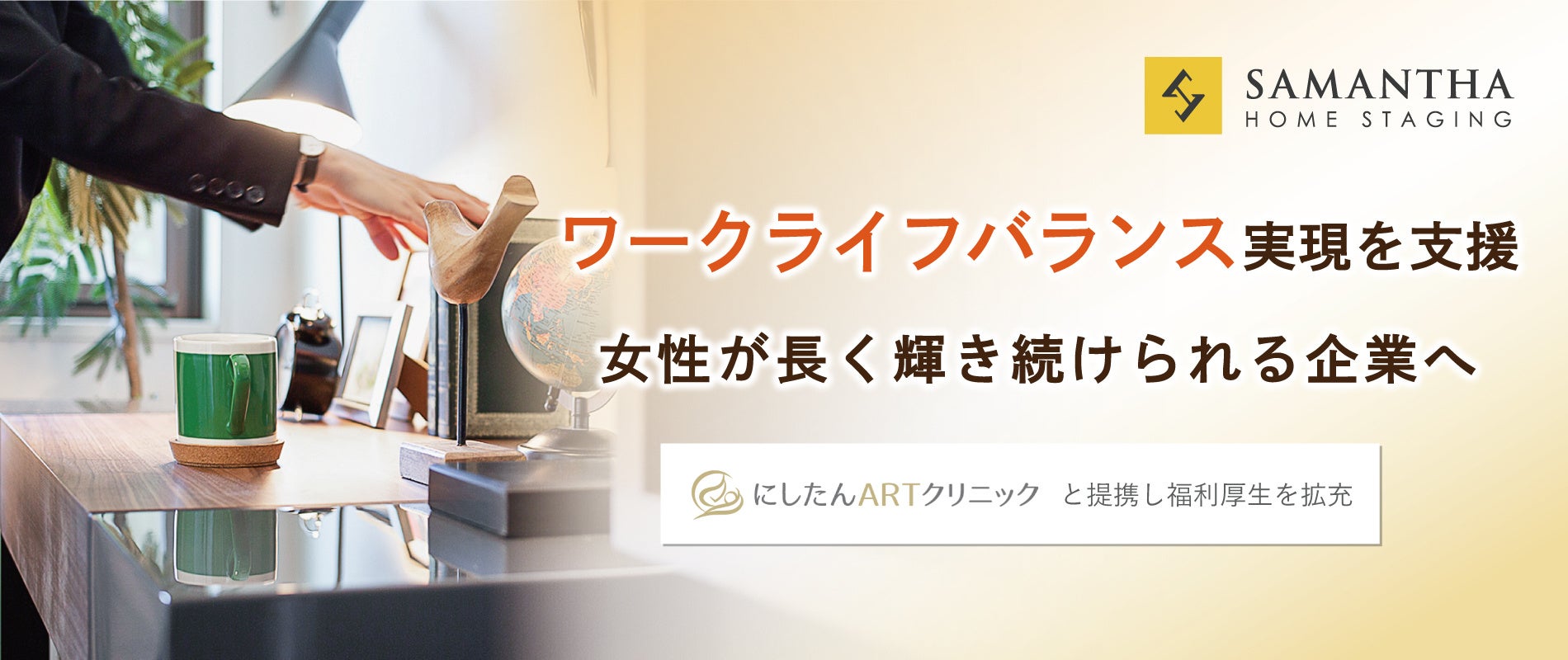 不動産物件の早期売却をアシストする空間演出「ホームステージング」を提供する株式会社サマンサ・ホームステージング(東京都江東区、代表取締役:大西 真史、以下「サマンサ・ホームステージング」)は、女性の継続的なキャリア形成やワークライフバランスの実現を支援する企業を目指して、「にしたんARTクリニック」のメディカル支援サービスを行っているエクスコムグローバル株式会社(本社/東京都渋谷区、代表取締役社長/西村 誠司)と提携し、従業員とその家族の妊活や不妊治療、女性特有の健康課題に関する無料相談および無料AMH検査を福利厚生の一環として導入しました。
